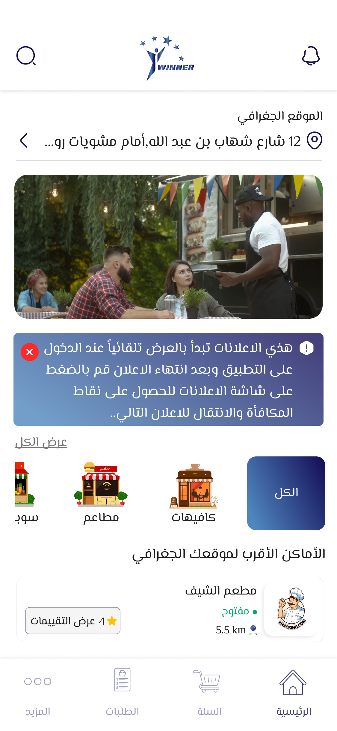 Winner" هي منصة إلكترونية متطورة تهدف إلى تسهيل حياتك اليومية من خلال الربط بين المستخدمين والمتاجر بكل سهولة وسلاسة، نسعى لتقديم تجربة تسوق متكاملة تعتمد على الجودة، السرعة، والثقة، لنكون الوسيط الأمثل الذي يلبي احتياجاتك بأقل جهد وفي وقت قياسي، رؤيتنا هي أن نصبح الخيار الأول للمستخدمين والمتاجر في كل مكان