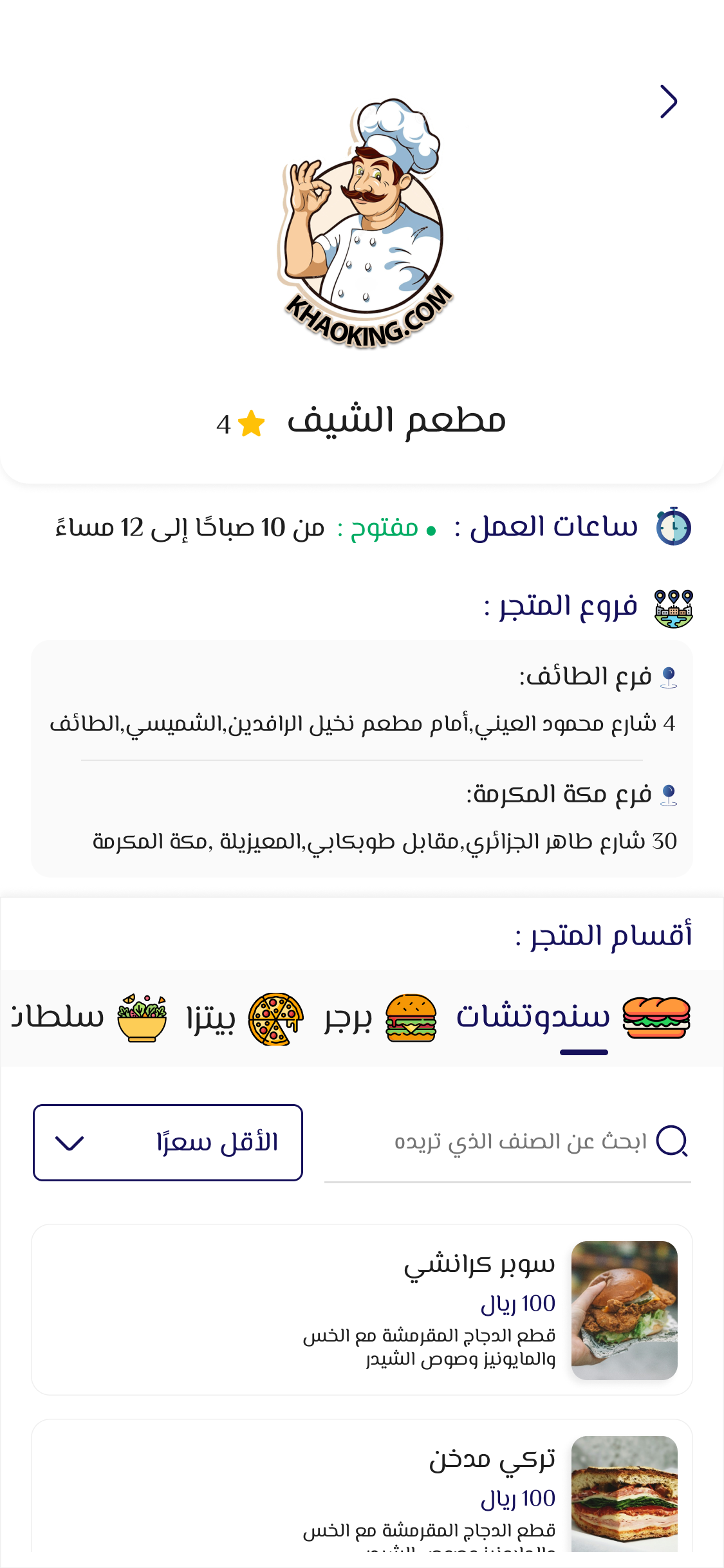 عند اختيارك لمقدم الخدمة الذي يلبي احتياجك كمطعم مثلا تظهر امامك المنتجات لتختار منها ما تريده