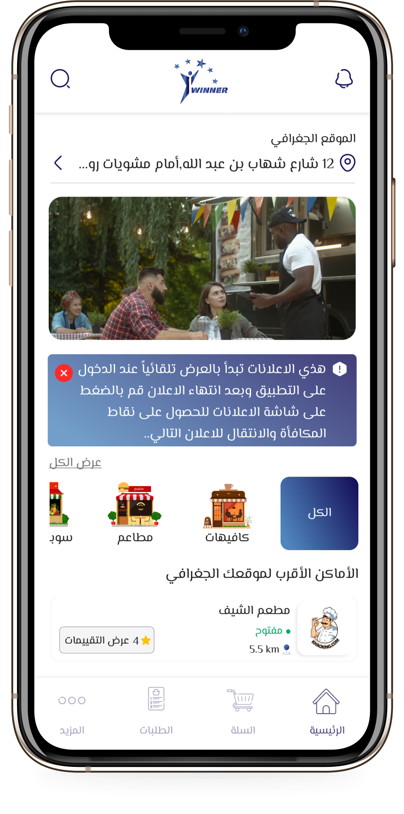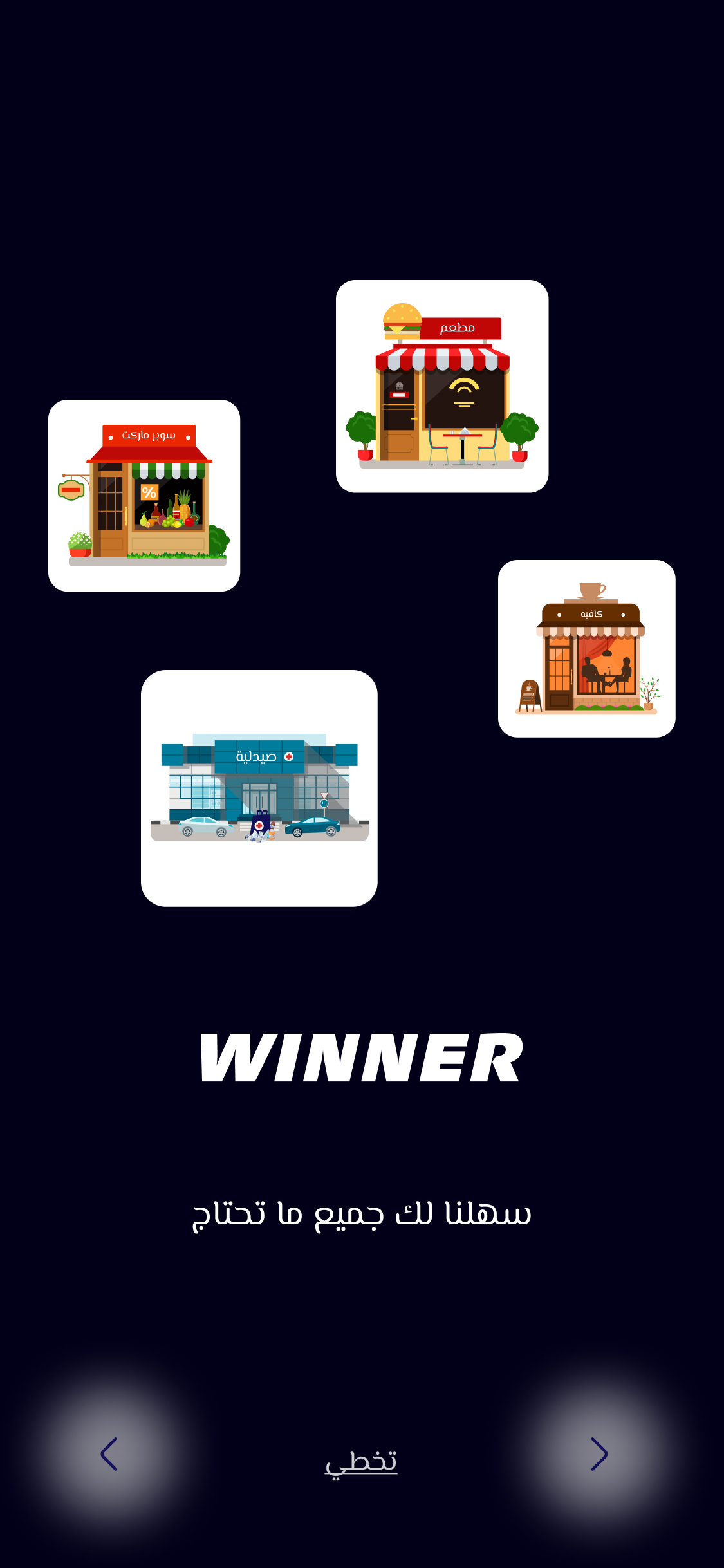 Winner" هي منصة إلكترونية متطورة تهدف إلى تسهيل حياتك اليومية من خلال الربط بين المستخدمين والمتاجر بكل سهولة وسلاسة، نسعى لتقديم تجربة تسوق متكاملة تعتمد على الجودة، السرعة، والثقة، لنكون الوسيط الأمثل الذي يلبي احتياجاتك بأقل جهد وفي وقت قياسي، رؤيتنا هي أن نصبح الخيار الأول للمستخدمين والمتاجر في كل مكان